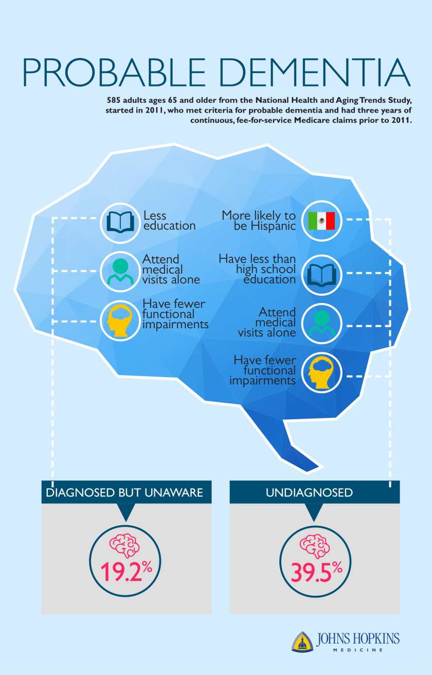A Johns Hopkins Medicine analysis of information gathered for an ongoing and federally sponsored study of aging and disability adds to evidence that a substantial majority of older adults with probable dementia in the United States have never been professionally diagnosed or are unaware they have been.